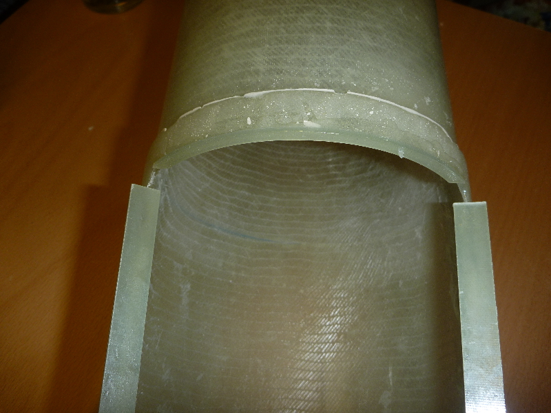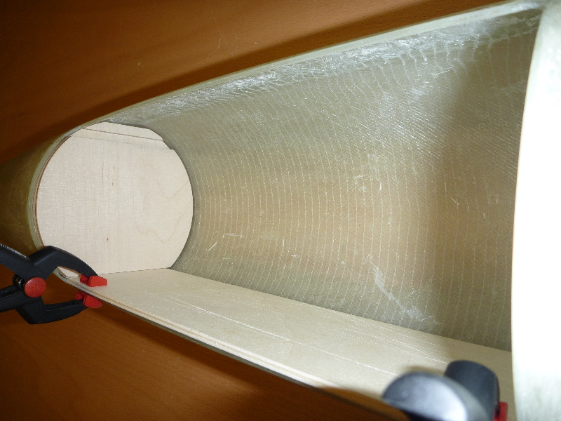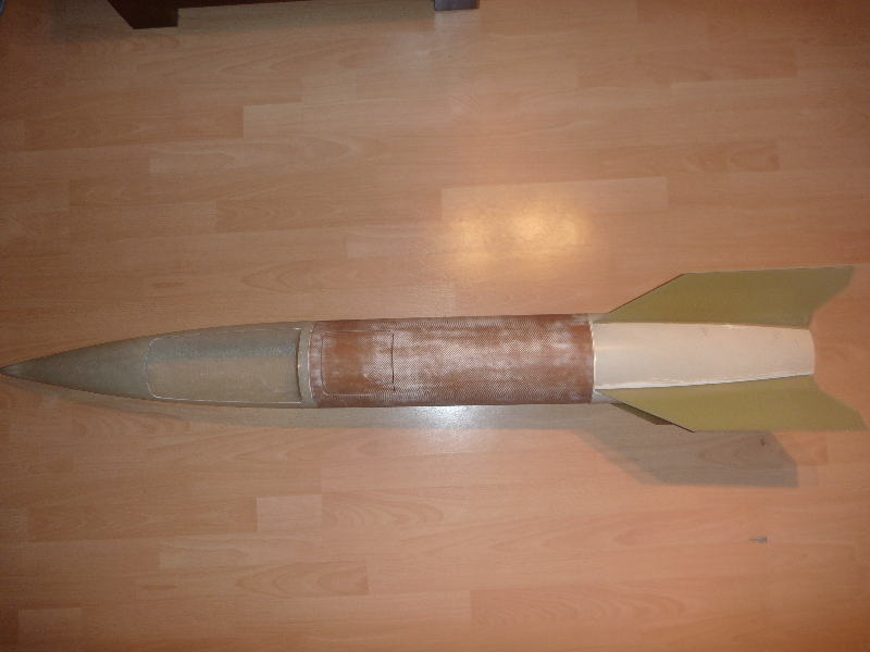 Zwischen Motorrohr und Leitwerk sind Fillets eingebracht, und zur Verstärkung mit 160g Glas laminiert. Endlich gehts mal wieder weiter! Im Augenblick grüble ich über Möglichkeiten einen Klappenmechnismus zu realisieren. Ausserdem möchte ich die noch notwendigen Komponenten (Hauptfallschirmkammer, Elektronik ect.) möglichst weit oben unterbringen. Desto geringer wird das zusätzlich nötige Ausgleichgewicht in der Spitze.