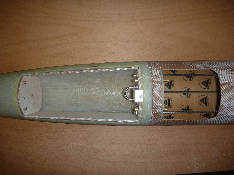 So, der Klappenausschnitt hat jetzt eine saubere Kante. Jetzt muss ich erst mal Holz besorgen: Für Spanten und die Kästen.