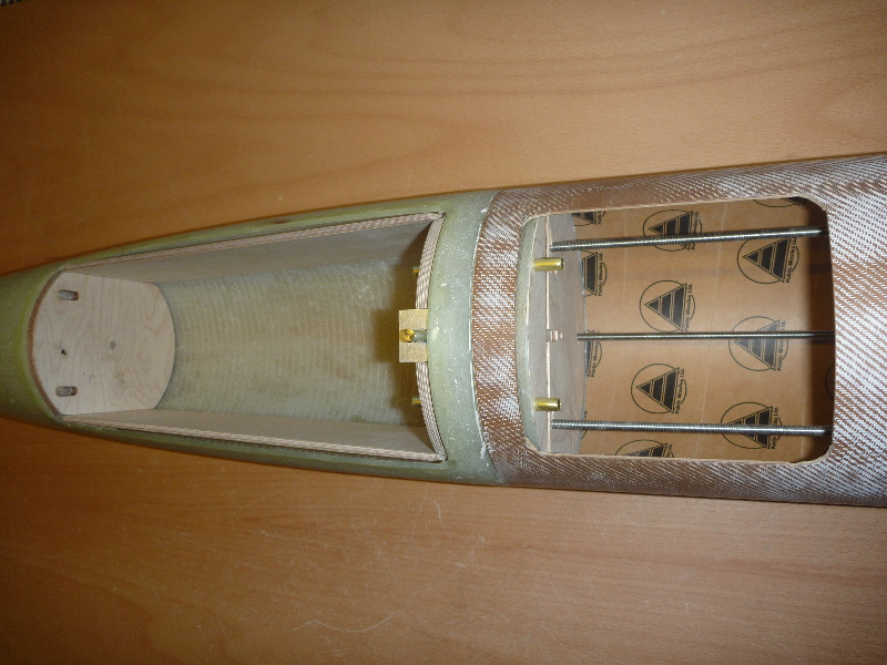 Ich arbeite mich so langsam von Oben nach Unten. Die Gewindestangen sollen den Eröffnungsschock des Hauptschirms in den Rest der Konstruktion einleiten: Die Messingröhrchen dienen später als Führung der Haltebolzen der Hauptfallschirm-Klappe: Viele Grüße Dennis