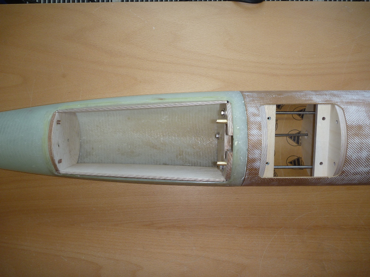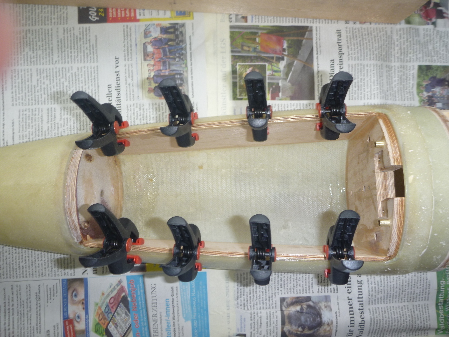 Einkleben des obersten Spants in der Spitze und danach die Seitenteile und der untere Spant der Hauptfallschirmkammer:
