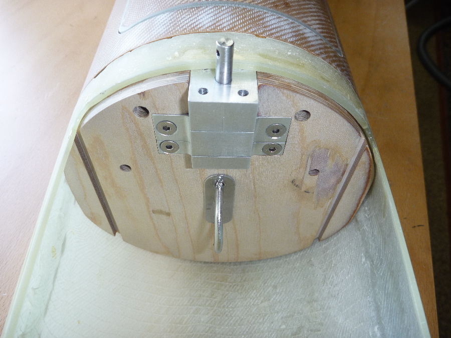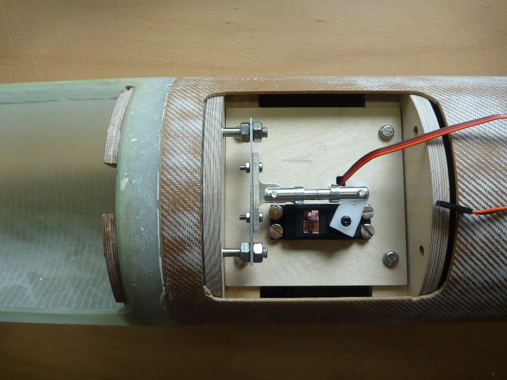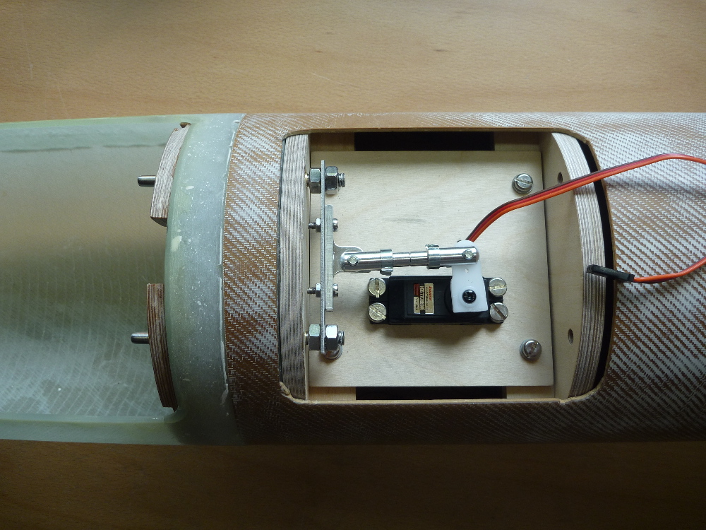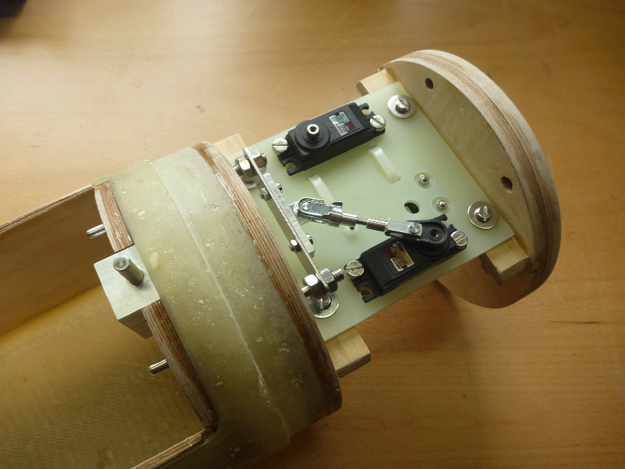 Der allererste Aufbau der Servomechanik zum Testen der Funktion der Haltebolzen.