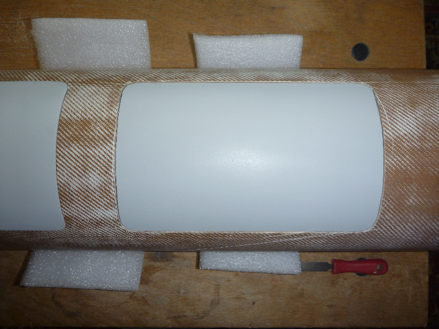 Weiter gehts mit der Vorschirm-Klappe. Erst mal eine Schnittschablone gemacht und dieses mal per Hand mit dem Cutter