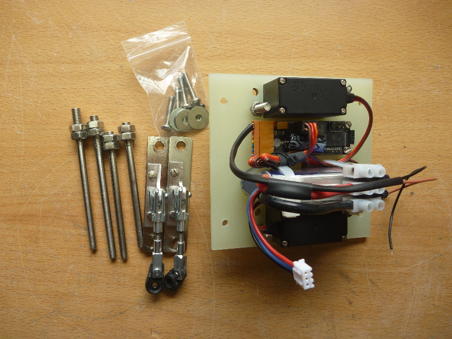 Momentan versuche ich geeignete Servo-Arme aufzutreiben. Die sollten mindestens aus Alu sein.