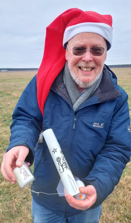 Raketen mit Weihnachtsmützen fliegen gut, aber die Mütze kostetete mehr Höhe als erwartet wodurch die Verzögerung der Ausstoßladung zu lang war, aber gerade noch rechtzeitig vor der Landung den Fallschirm auswarf.